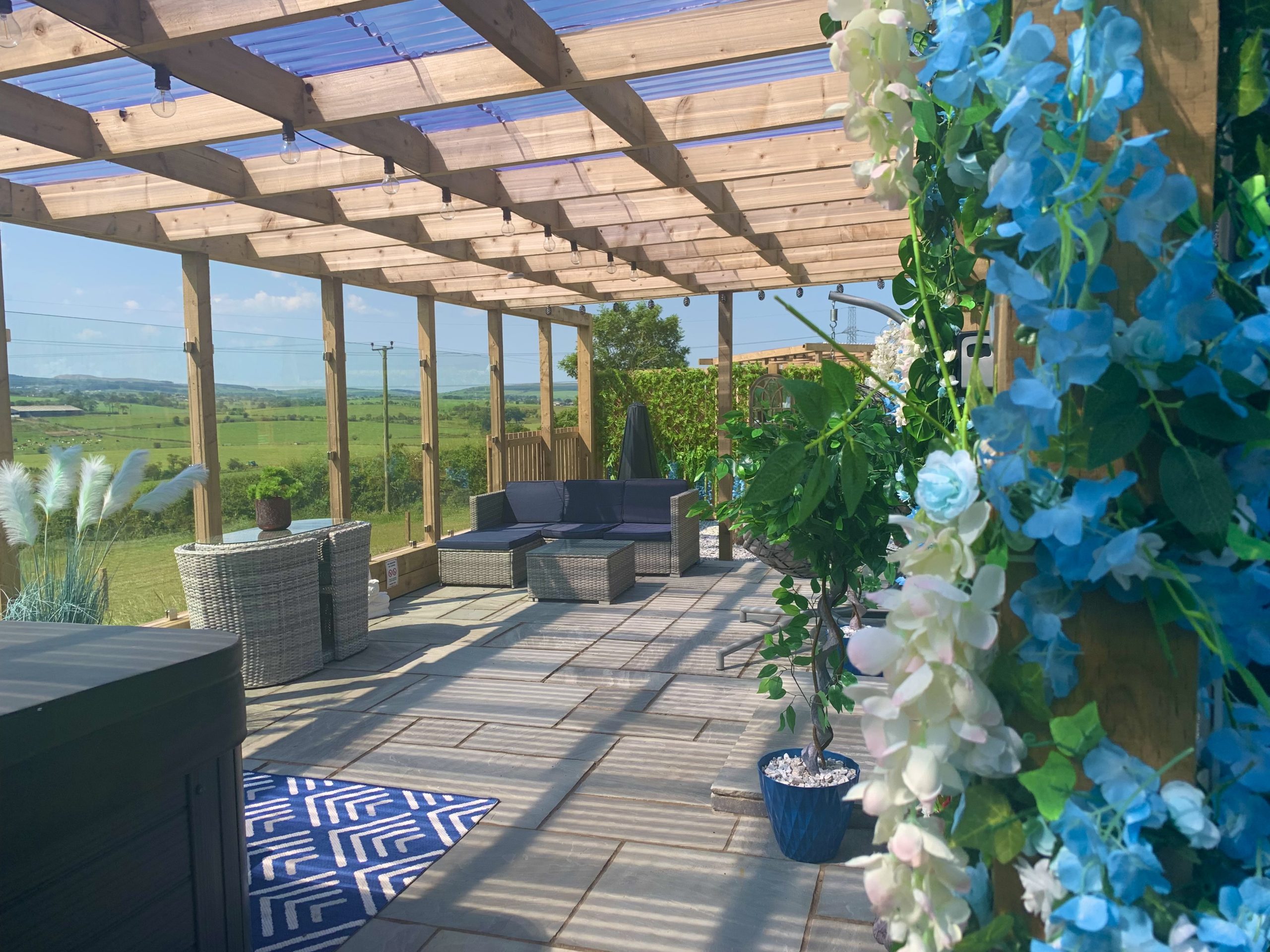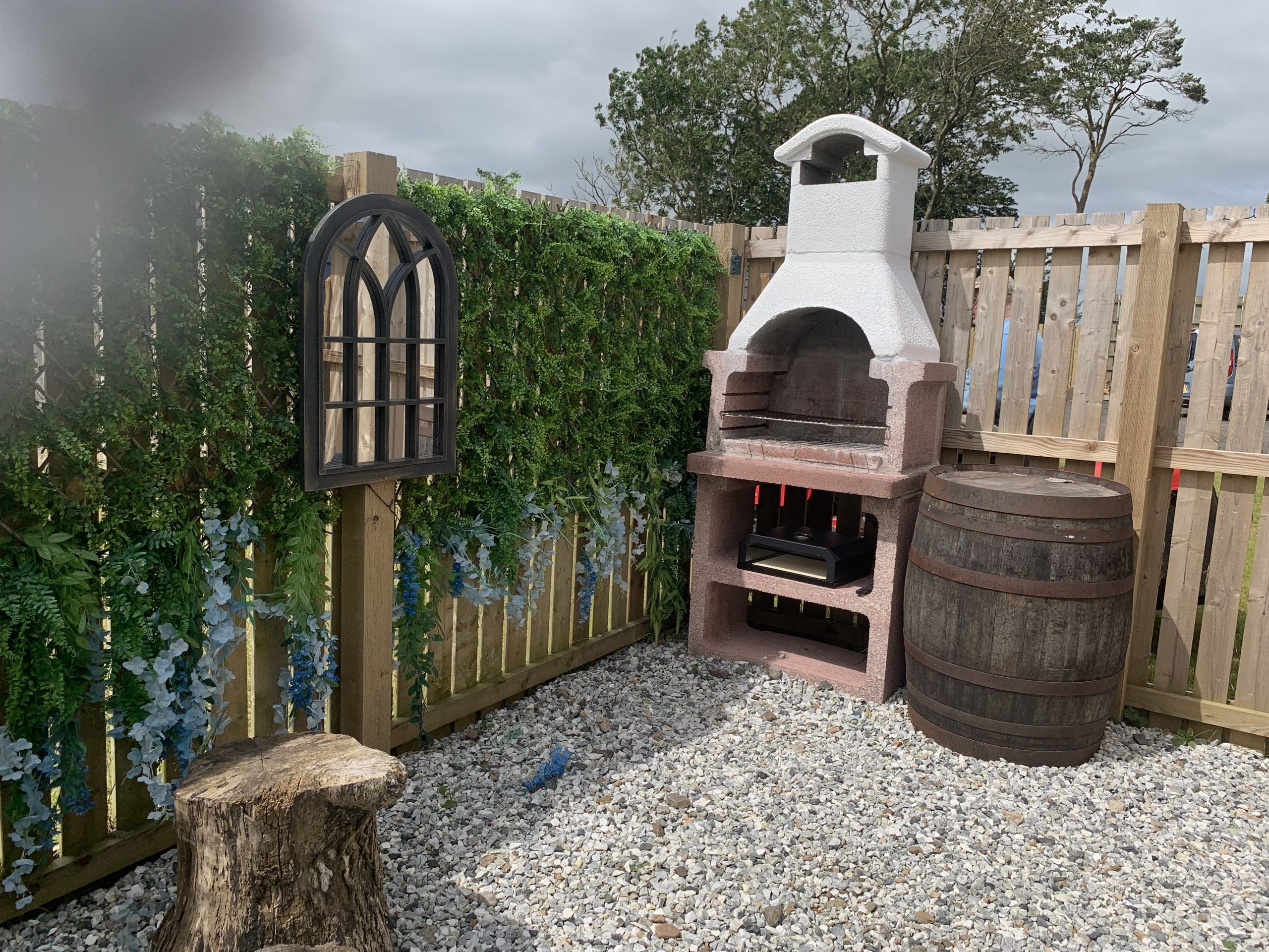 Outside Barony has a large covered paved terrace with an outside/inside feel. On the terrace is an amazing hot tub, outdoor sofa and egg chair for your comfort, BBQ & fire pit area and decorative plants.Inside Barony there is ;