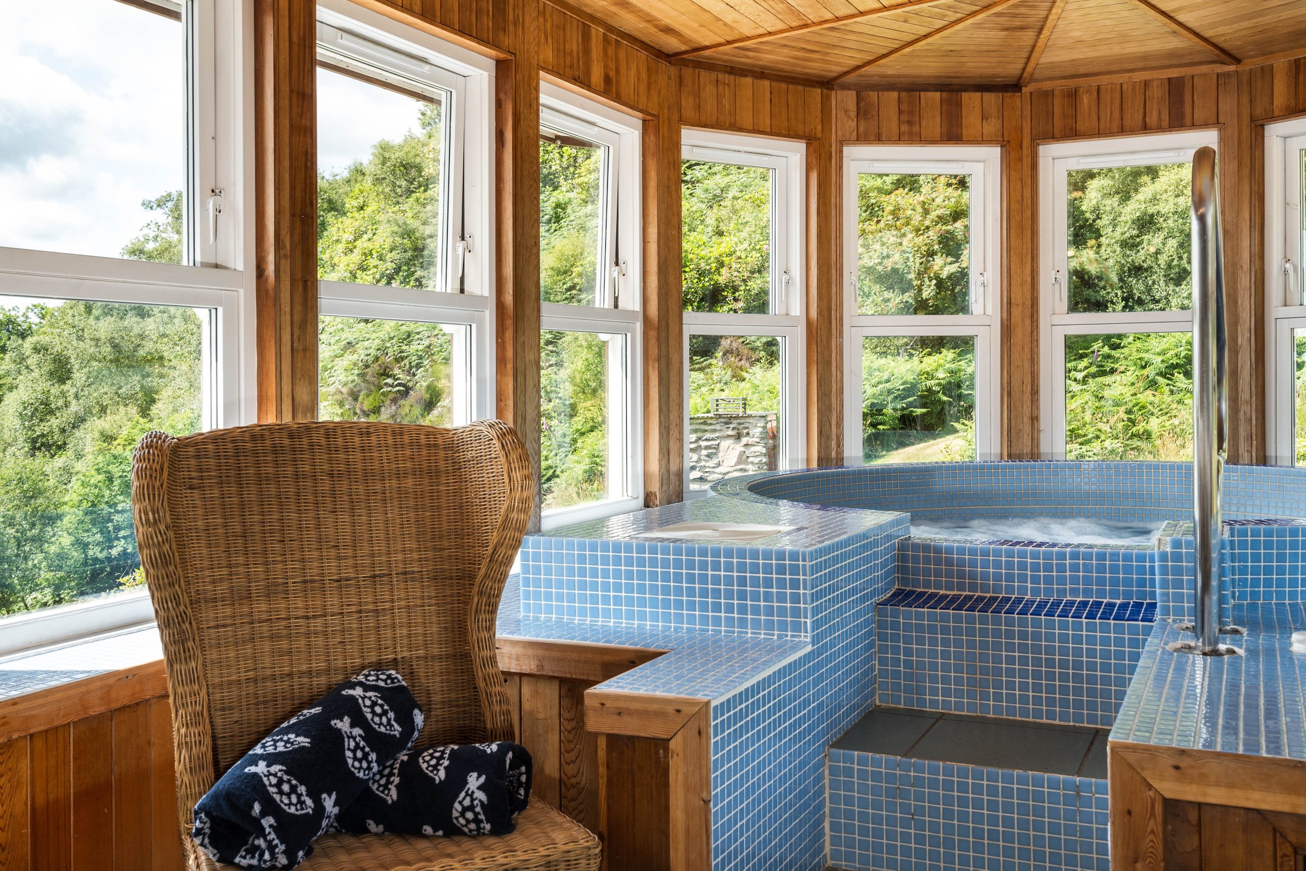 The hot tub is in a purpose built indoor area, next to the living room. It has large windows, meaning you can enjoy the hot tub even in the worst of the Scottish weather.